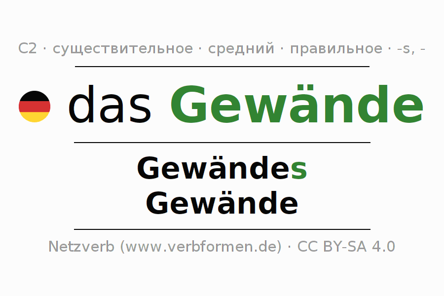 - Множественное число: die Gewände, der Gewände, den Gewänden, die Gewände