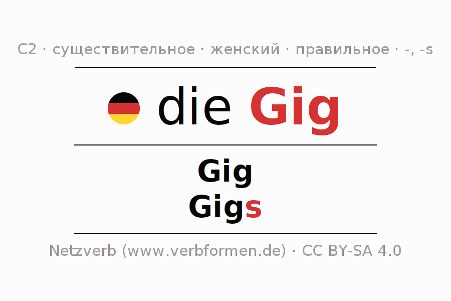 - Единственное число: die Gig, der Gig, der Gig, die Gig