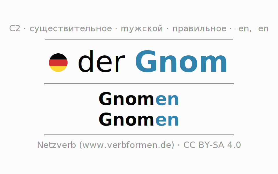 - Единственное число: der Gnom, des Gnomen, dem Gnomen, den Gnomen