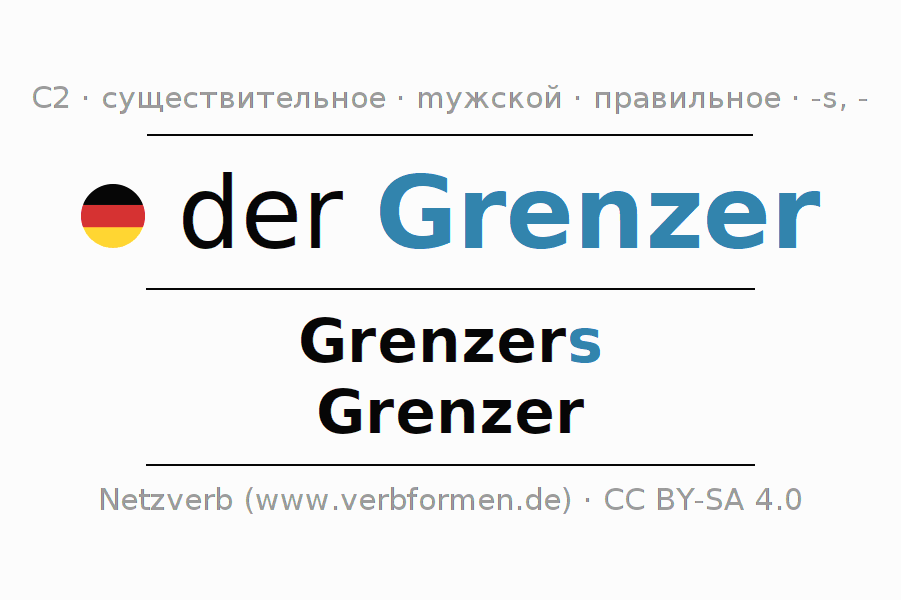 - Единственное число: der Grenzer, des Grenzers, dem Grenzer, den Grenzer