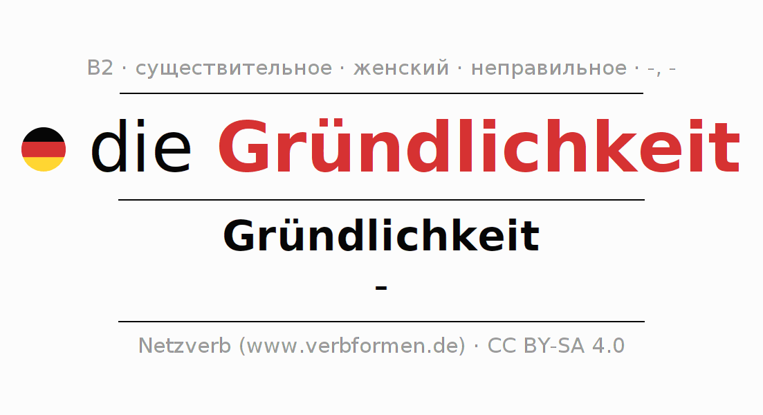 - Единственное число: die Gründlichkeit, der Gründlichkeit, der Gründlichkeit, die Gründlichkeit