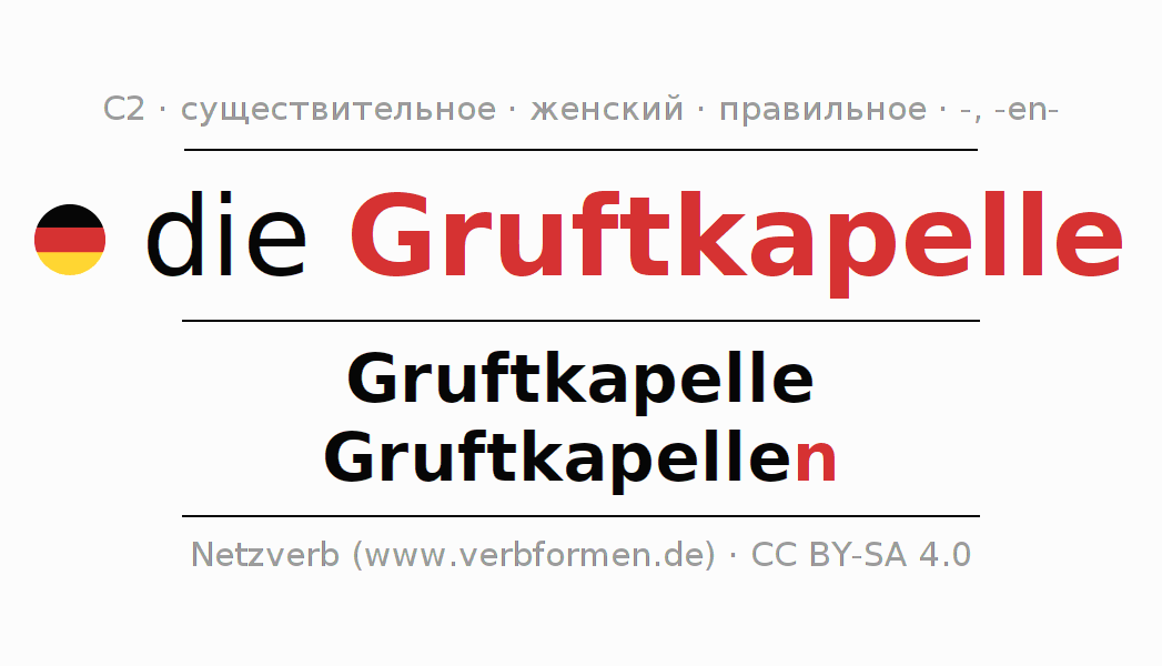 - Единственное число: die Gruftkapelle, der Gruftkapelle, der Gruftkapelle, die Gruftkapelle