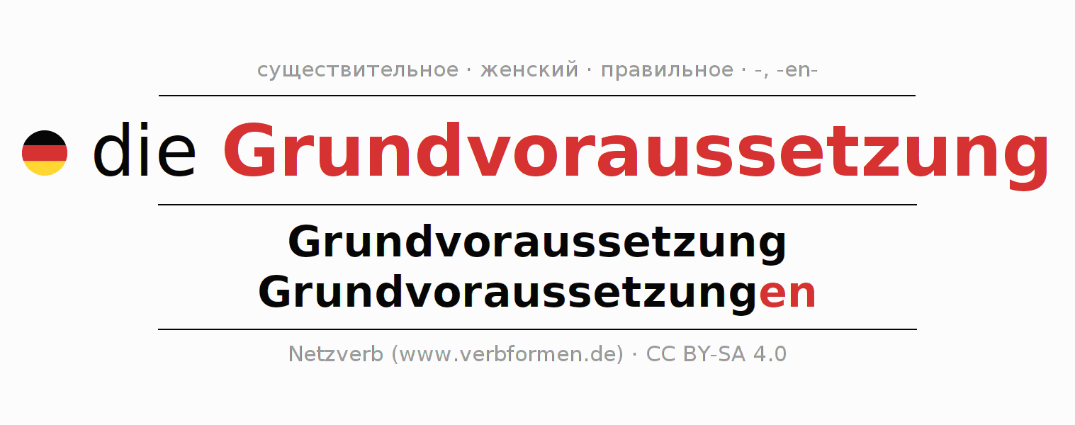 - Единственное число: die Grundvoraussetzung, der Grundvoraussetzung, der Grundvoraussetzung, die Grundvoraussetzung