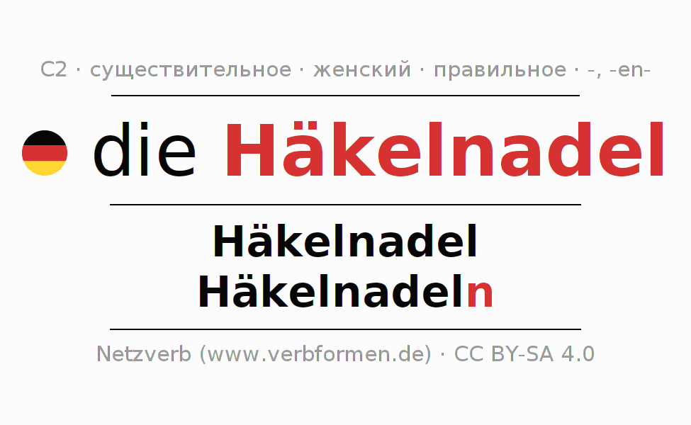 - Единственное число: die Häkelnadel, der Häkelnadel, der Häkelnadel, die Häkelnadel