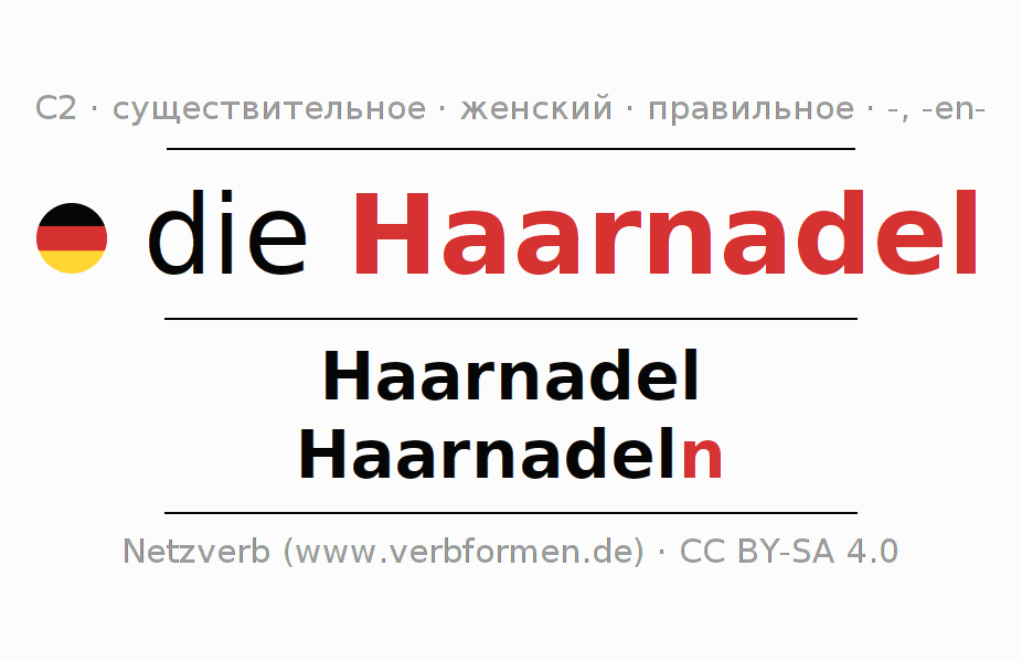 - Единственное число: die Haarnadel, der Haarnadel, der Haarnadel, die Haarnadel