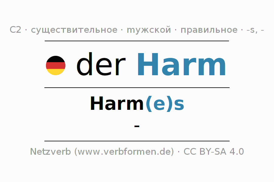 - Единственное число: der Harm, des Harm(e)s, dem Harm(e), den Harm