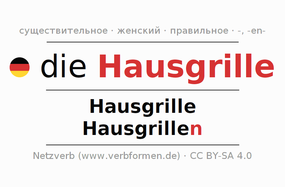 - Единственное число: die Hausgrille, der Hausgrille, der Hausgrille, die Hausgrille