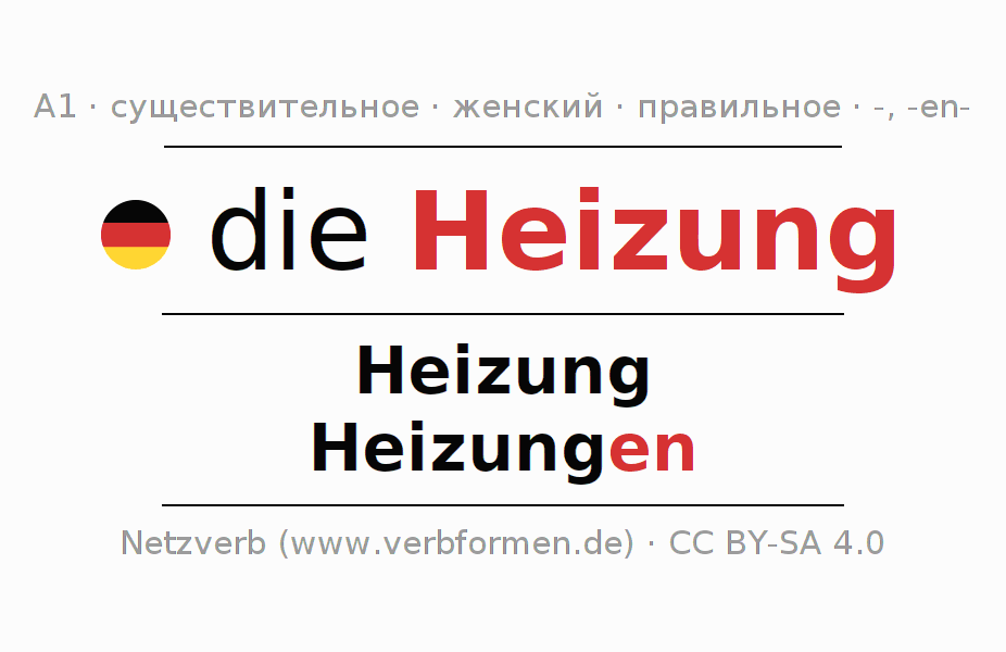 - Единственное число: die Heizung, der Heizung, der Heizung, die Heizung