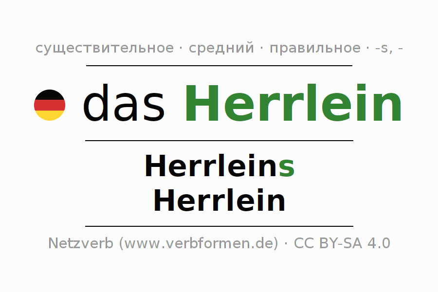 - Единственное число: das Herrlein, des Herrleins, dem Herrlein, das Herrlein