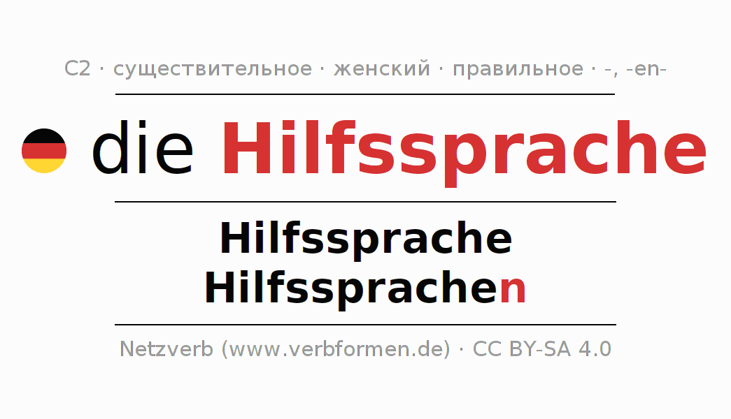 - Единственное число: die Hilfssprache, der Hilfssprache, der Hilfssprache, die Hilfssprache