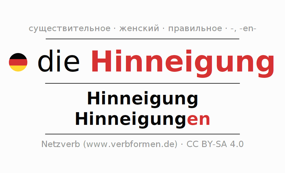 - Единственное число: die Hinneigung, der Hinneigung, der Hinneigung, die Hinneigung