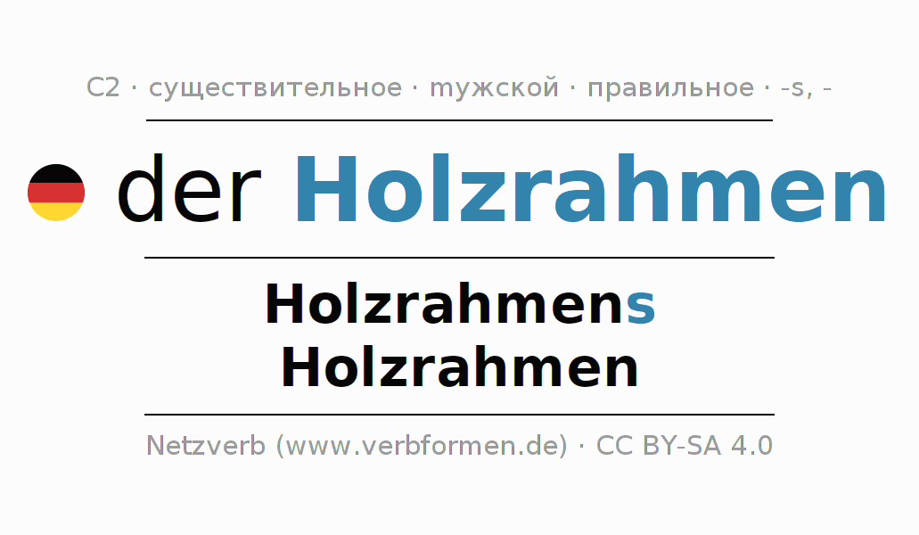 - Единственное число: der Holzrahmen, des Holzrahmens, dem Holzrahmen, den Holzrahmen