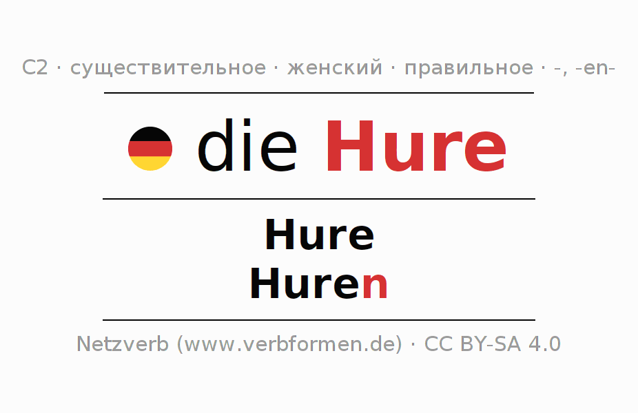 - Единственное число: die Hure, der Hure, der Hure, die Hure