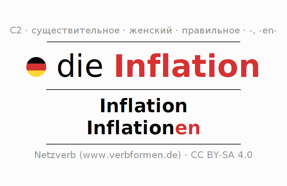 - Единственное число: die Inflation, der Inflation, der Inflation, die Inflation