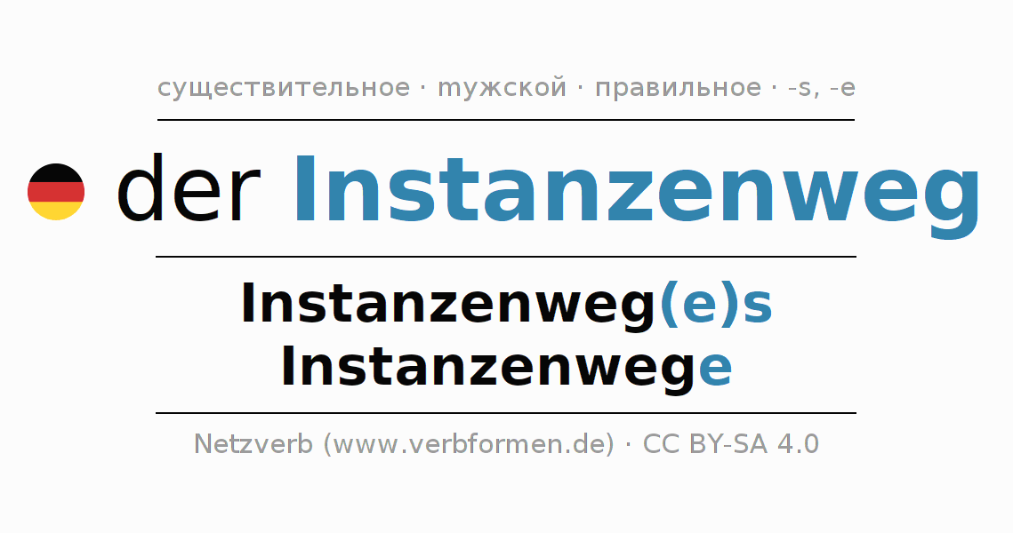 - Множественное число: die Instanzenwege, der Instanzenwege, den Instanzenwegen, die Instanzenwege