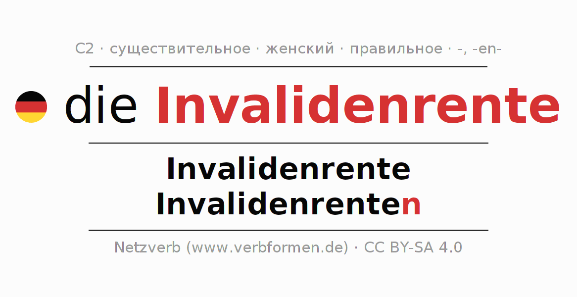 - Единственное число: die Invalidenrente, der Invalidenrente, der Invalidenrente, die Invalidenrente