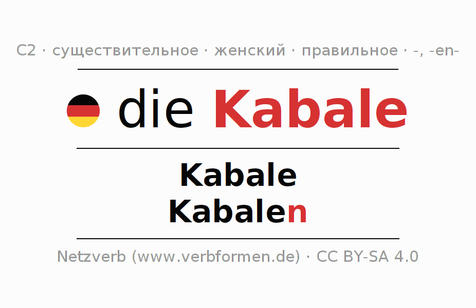 - Множественное число: die Kabalen, der Kabalen, den Kabalen, die Kabalen