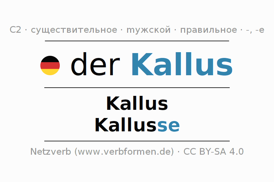 - Множественное число: die Kallusse, der Kallusse, den Kallussen, die Kallusse