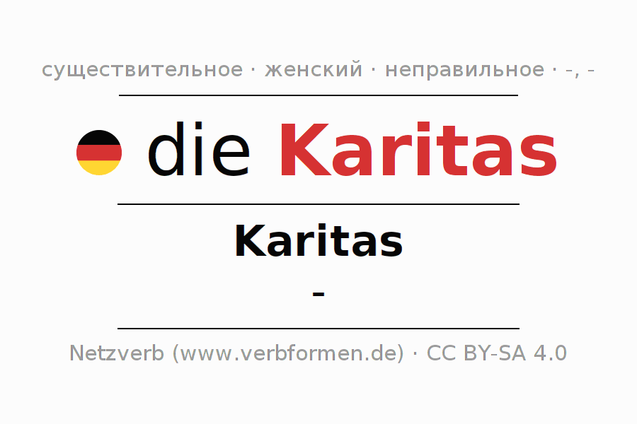 - Единственное число: die Karitas, der Karitas, der Karitas, die Karitas