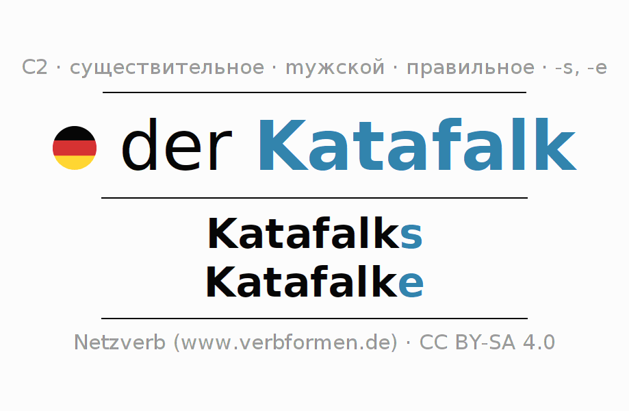 - Единственное число: der Katafalk, des Katafalks, dem Katafalk, den Katafalk