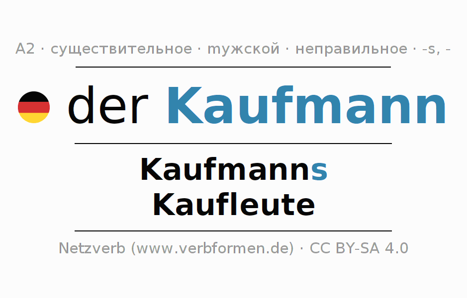 - Единственное число: der Kaufmann, des Kaufmanns, dem Kaufmann, den Kaufmann