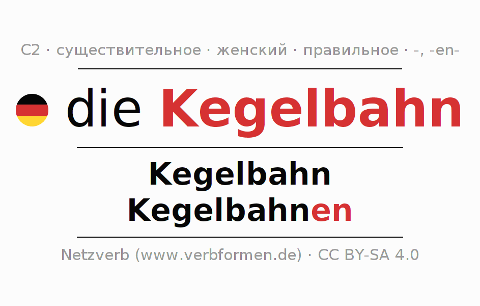- Единственное число: die Kegelbahn, der Kegelbahn, der Kegelbahn, die Kegelbahn