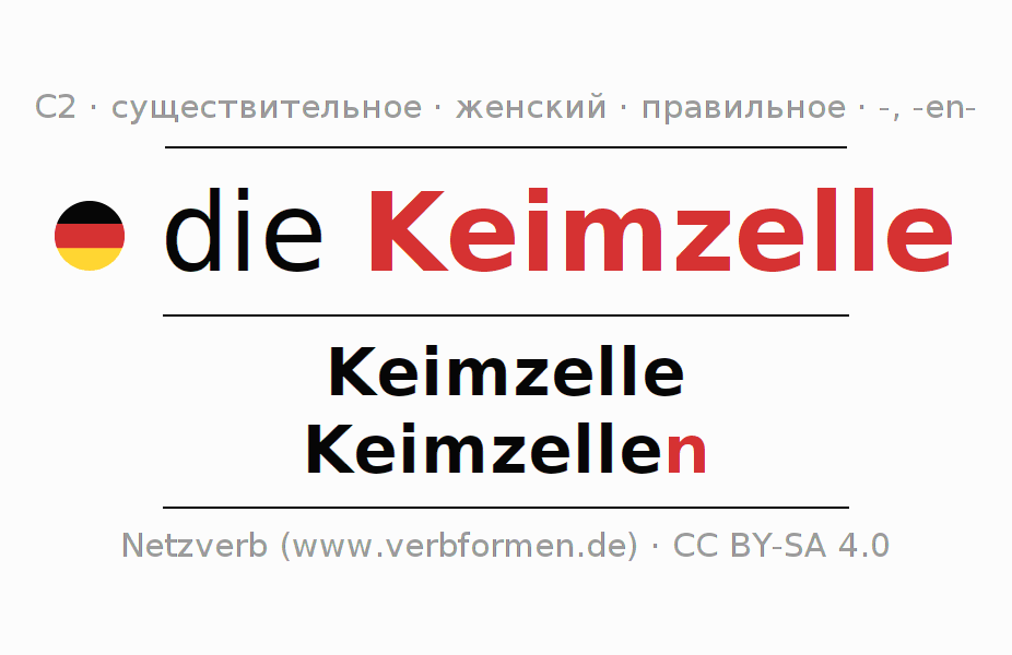 - Множественное число: die Keimzellen, der Keimzellen, den Keimzellen, die Keimzellen