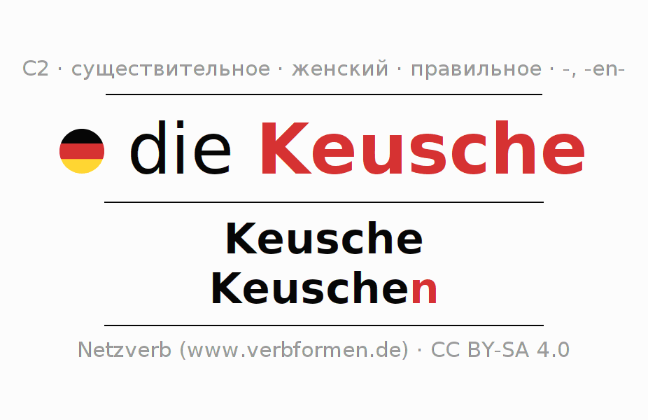 - Единственное число: die Keusche, der Keusche, der Keusche, die Keusche