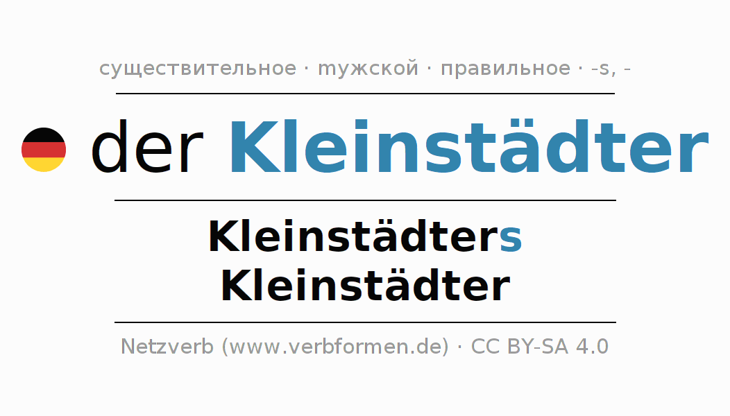 - Единственное число: der Kleinstädter, des Kleinstädters, dem Kleinstädter, den Kleinstädter