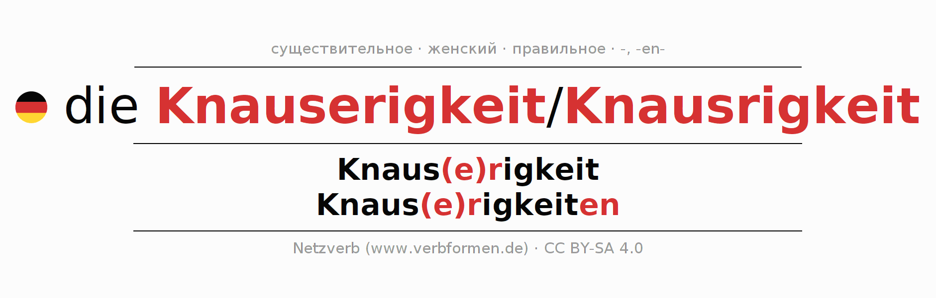 Дат. | der Knaus(e)rigkeit | den Knaus(e)rigkeiten |