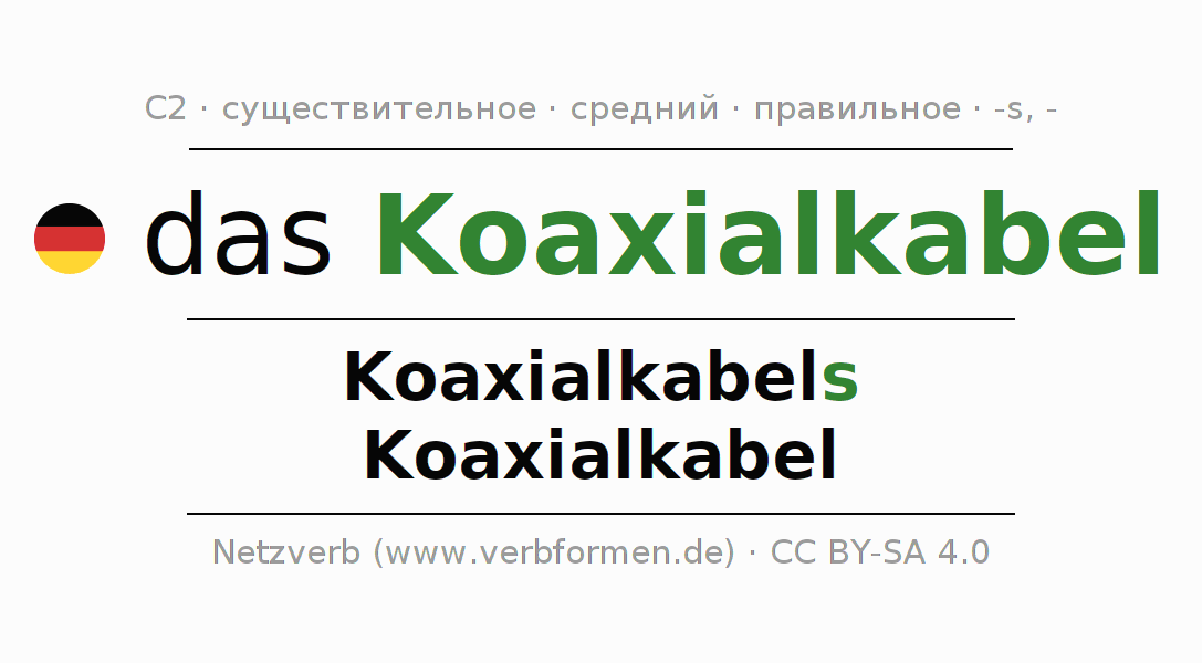 - Множественное число: die Koaxialkabel, der Koaxialkabel, den Koaxialkabeln, die Koaxialkabel