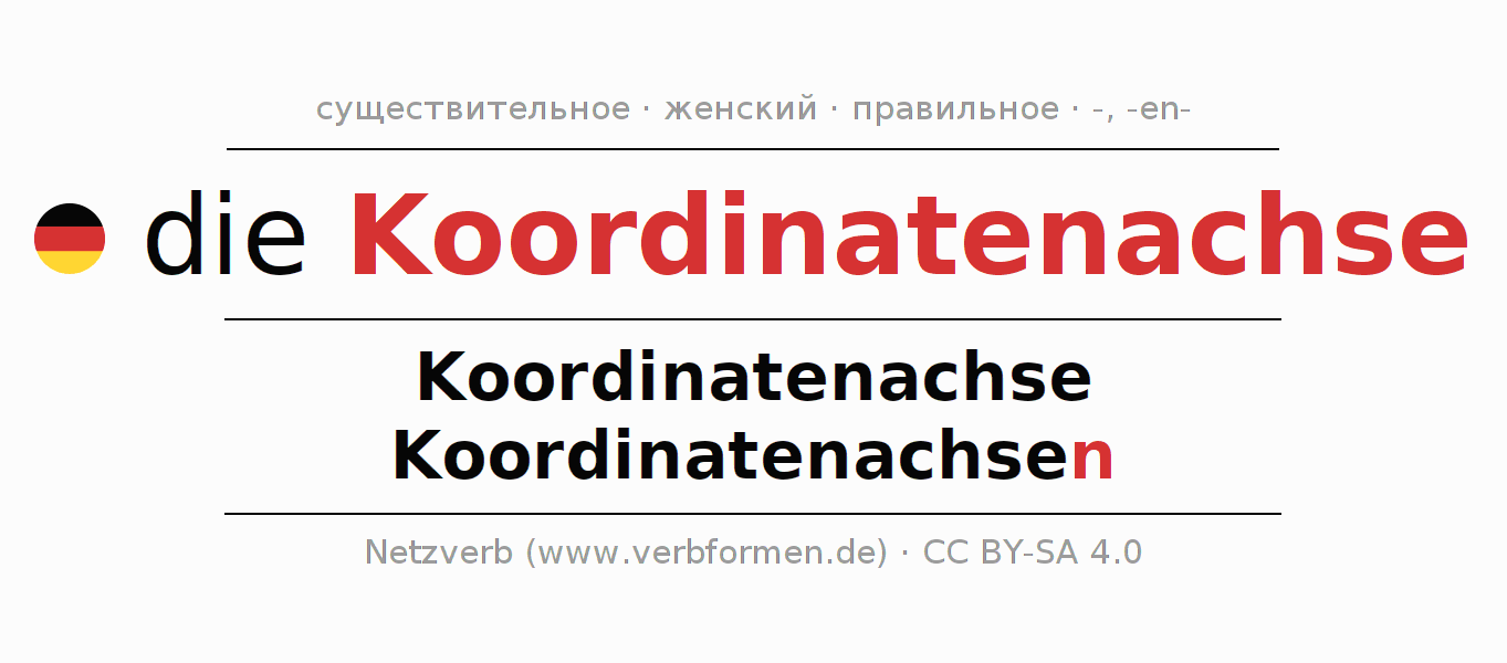 - Множественное число: die Koordinatenachsen, der Koordinatenachsen, den Koordinatenachsen, die Koordinatenachsen
