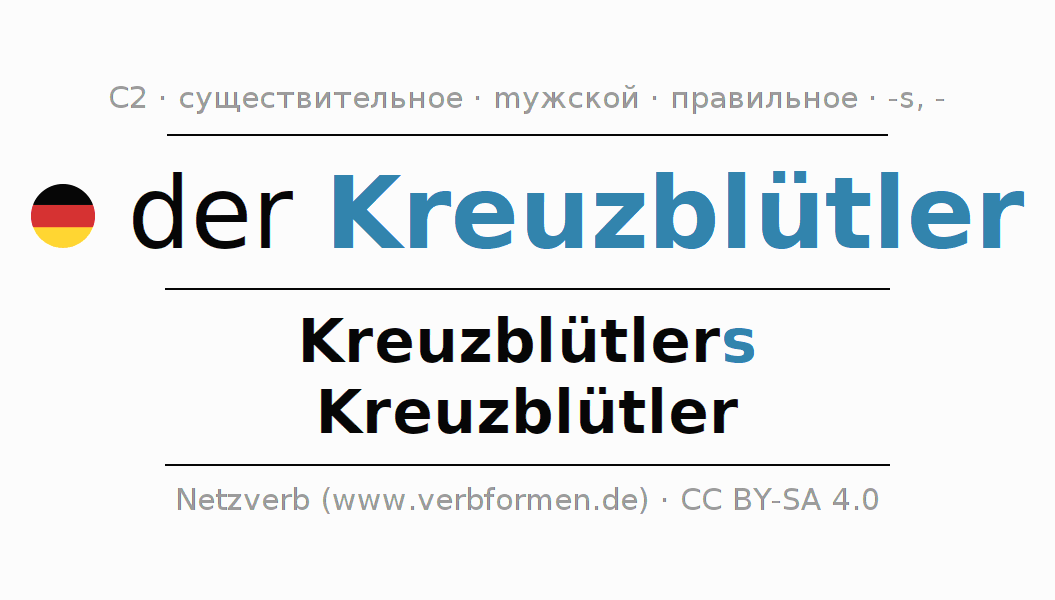 - Множественное число: die Kreuzblütler, der Kreuzblütler, den Kreuzblütlern, die Kreuzblütler
