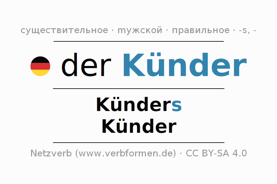 - Множественное число: die Künder, der Künder, den Kündern, die Künder