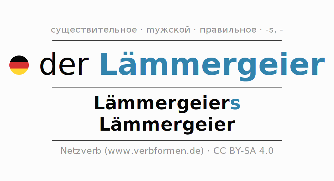 - Единственное число: der Lämmergeier, des Lämmergeiers, dem Lämmergeier, den Lämmergeier