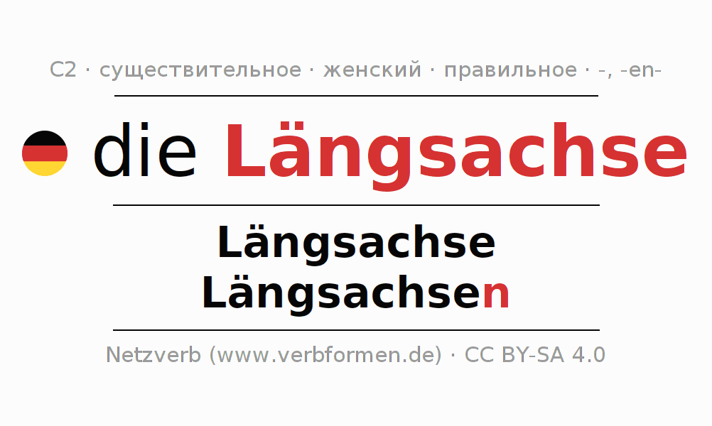 - Множественное число: die Längsachsen, der Längsachsen, den Längsachsen, die Längsachsen