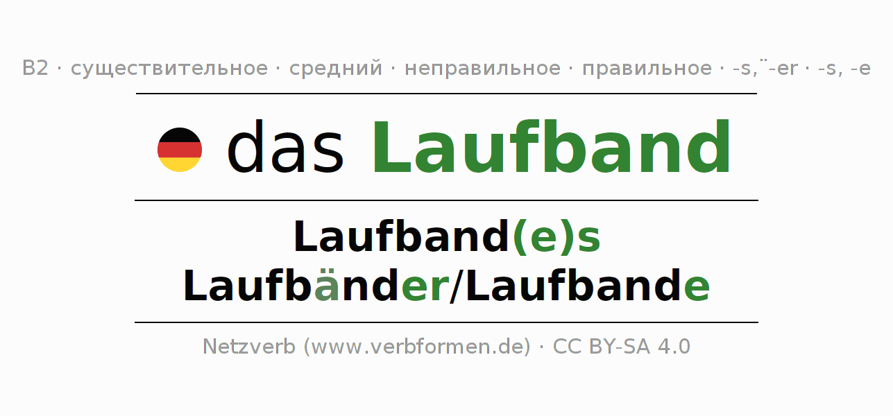 | Им. | das Laufband | die Laufbänder/Laufbande |