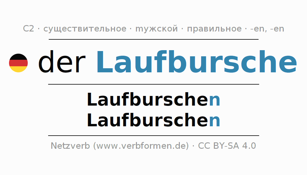 - Единственное число: der Laufbursche, des Laufburschen, dem Laufburschen, den Laufburschen