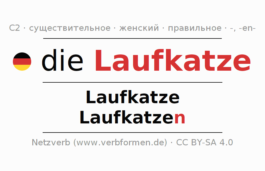 - Единственное число: die Laufkatze, der Laufkatze, der Laufkatze, die Laufkatze