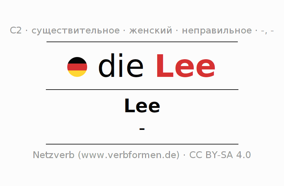 - Единственное число: die Lee, der Lee, der Lee, die Lee
