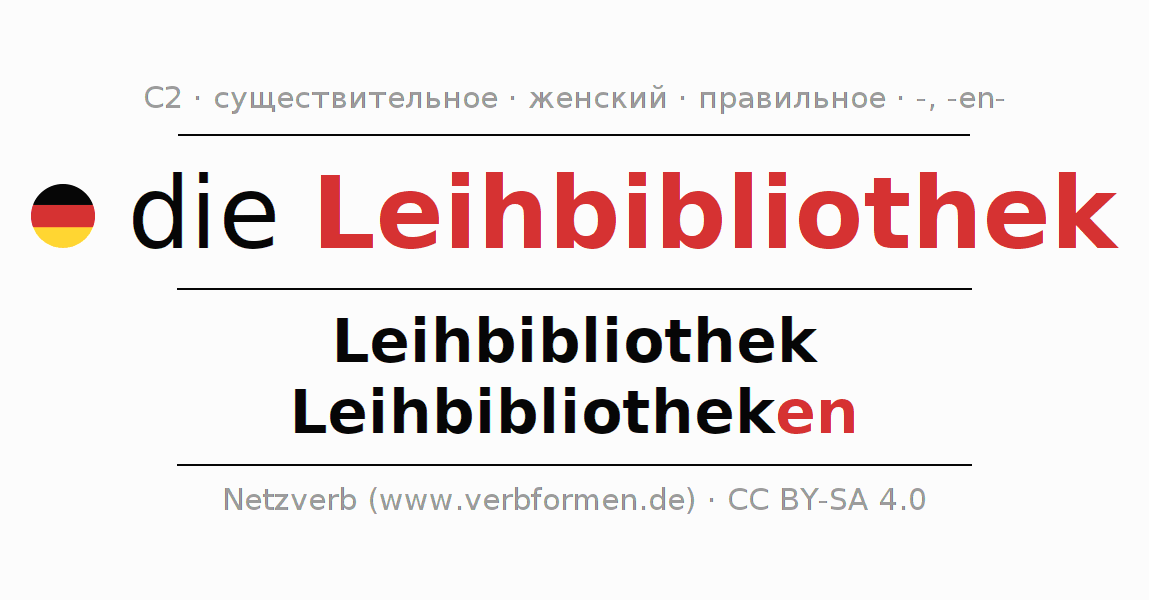 - Единственное число: die Leihbibliothek, der Leihbibliothek, der Leihbibliothek, die Leihbibliothek