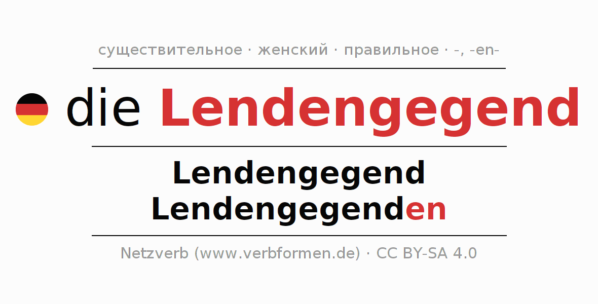 - Множественное число: die Lendengegenden, der Lendengegenden, den Lendengegenden, die Lendengegenden