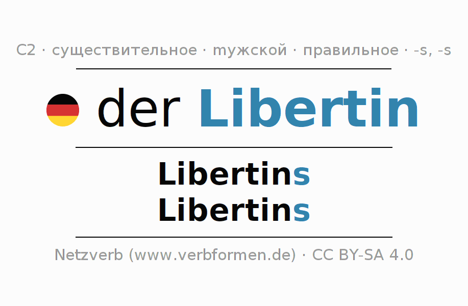 - Единственное число: der Libertin, des Libertins, dem Libertin, den Libertin