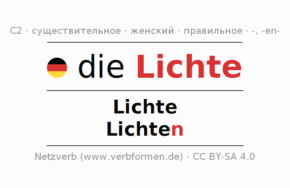 - Единственное число: die Lichte, der Lichte, der Lichte, die Lichte