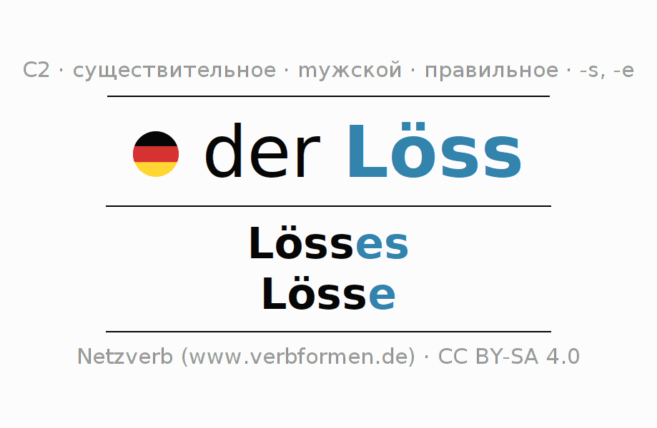 - Единственное число: der Löss, des Lösses, dem Löss(e), den Löss