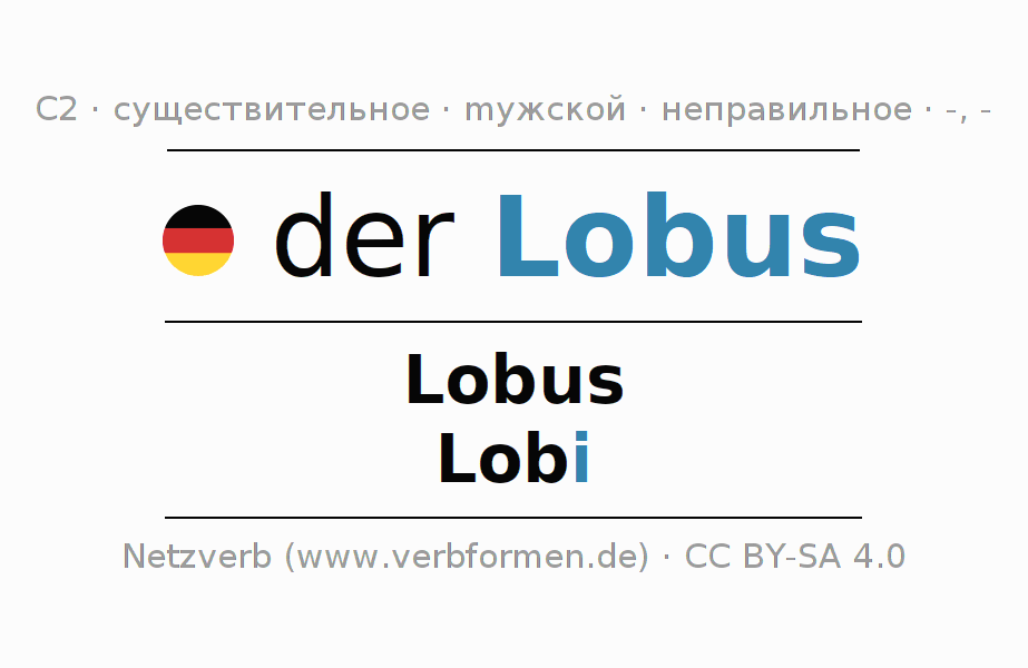 - Единственное число: der Lobus, des Lobus, dem Lobus, den Lobus
