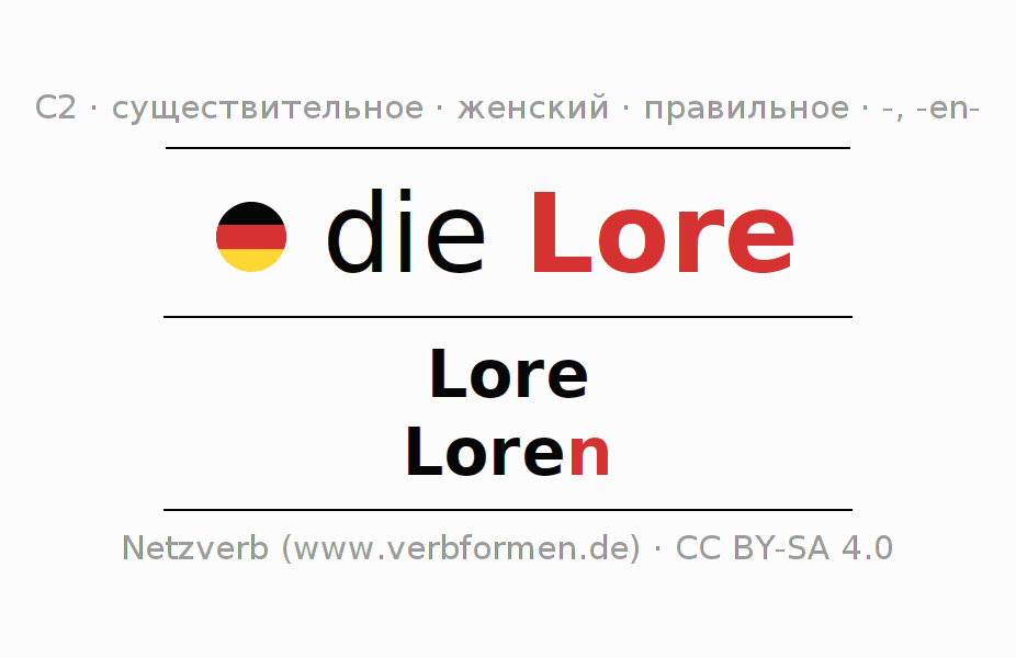 - Единственное число: die Lore, der Lore, der Lore, die Lore