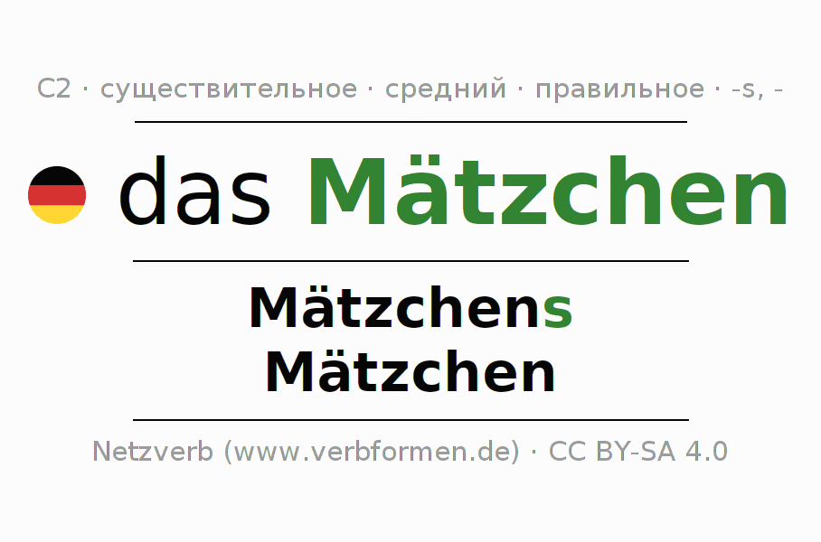 - Множественное число: die Mätzchen, der Mätzchen, den Mätzchen, die Mätzchen