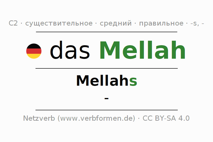 - Единственное число: das Mellah, des Mellahs, dem Mellah, das Mellah