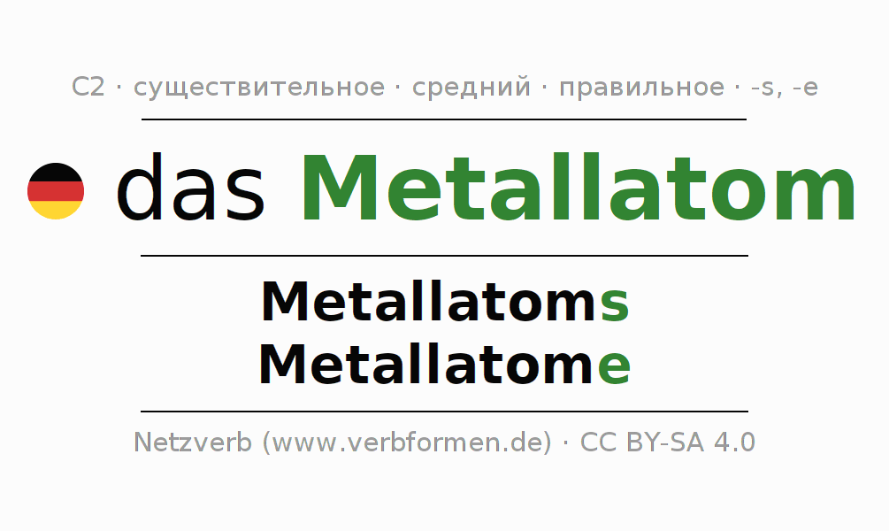 - Множественное число: die Metallatome, der Metallatome, den Metallatomen, die Metallatome